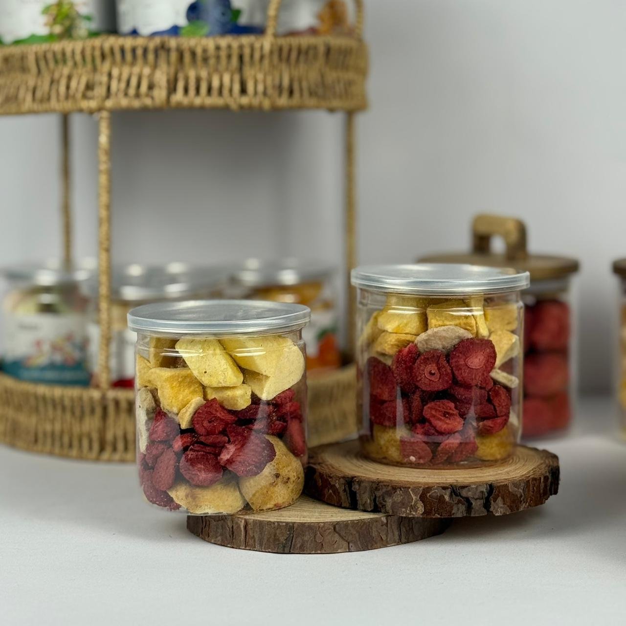 فواكه مجففة بالتبريد – ميكس فراولة، موز، مشمش، مانجا 🍓🍌🍑🥭