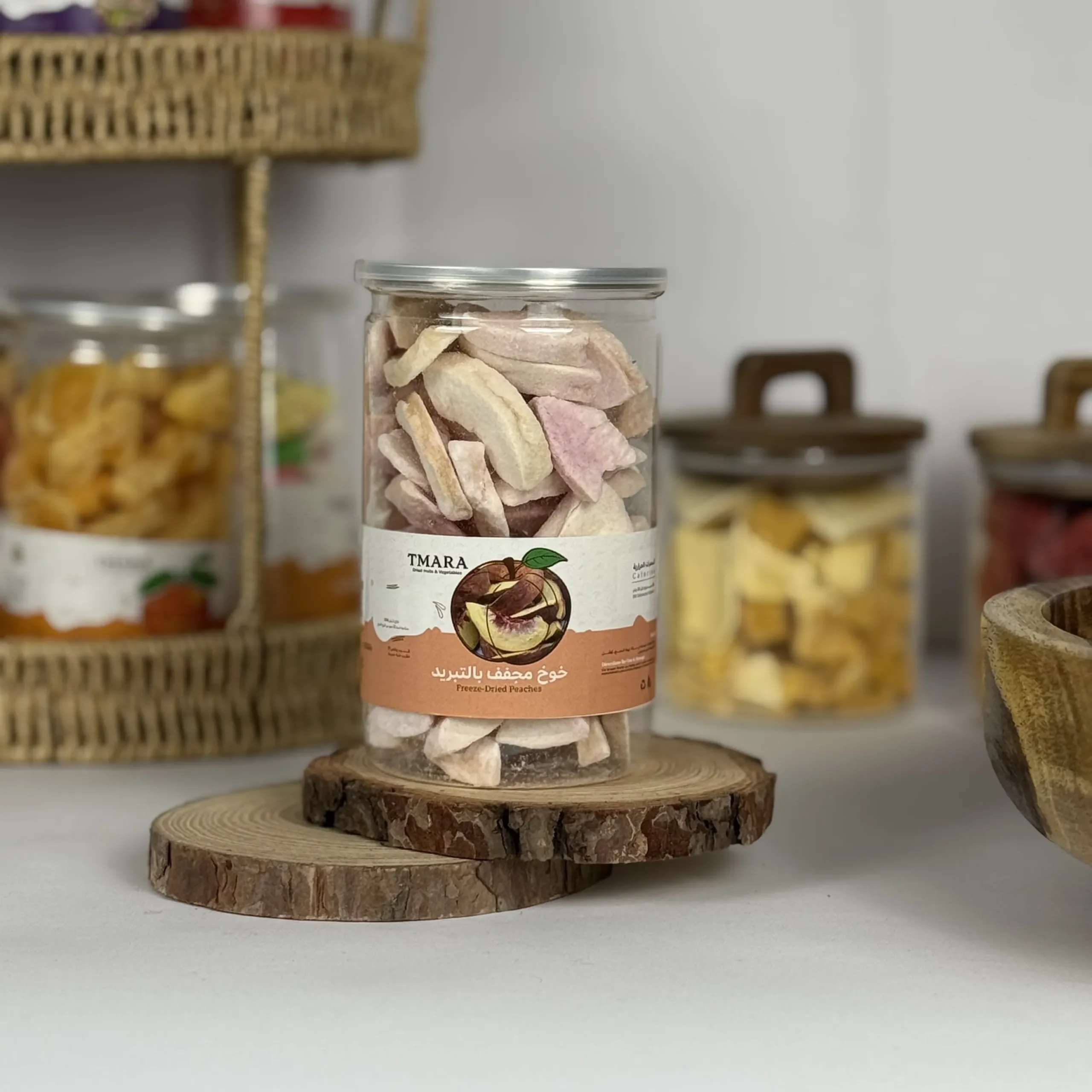 خوخ مجفف بالتبريد – طعم منعش وقرمشة صيفية هشة تذوب في الشفاه